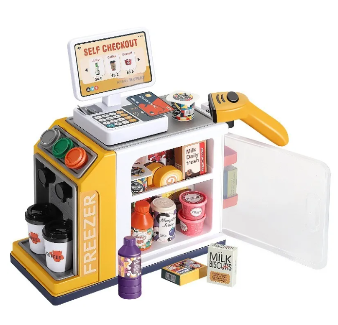 Roligt lekset med supermarket-tema för barn i åldrarna 4–6 år. Innehåller en varuautomat, kassaapparat och tillbehör som uppmuntrar till interaktiv lek och utveckling av färdigheter.